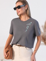Нарядная футболка с принтом пайетками из премиального хлопка с эластаном
