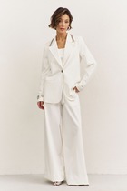 Костюм женский, состоящий из джемпера и брюк. Джемпер со спущенной проймой и 3/4 рукавом, вырез горловины полукруглый, длина джемпера до бёдер. Отделка-бант. Брюки 7/8 длины, зауженые со стрелками, без корманов, на поясе- кокетке, спереди и сзади с эластичной тесьмой.