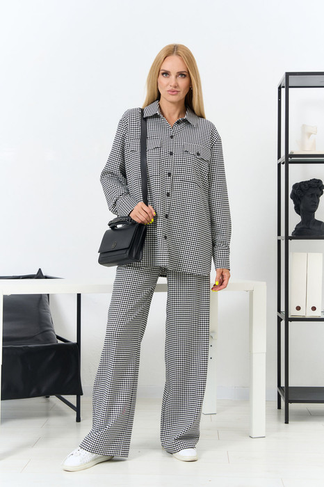 Комплект женский состоит из блузки и брюк.
