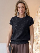 Юбка прямая,зауженная книзу, выполнена из отделочной ткани серебро с эффектом патины.Юбка с талиевыми вытачками ,на притачном поясе с резинкой в области боковых швов и застёжкой на тесьму-молнию и петлю и пуговицу. Заднее полотнище юбки со средним швом, заканчивающимся шлицей. Юбка на трикотажной подкладке.
