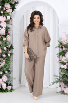 Женский двухпредметный костюм состоит из удлиненного джемпера и брюк, выполнен из трикотажного полотна в мелкий рубчик 3 цветов.