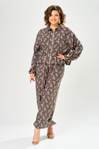 Костюм женский, состоящий из платья и жакета. Платье прилегающего силуэта на подкладке. Спереди с рельефами, переходящими в вытачки. Спинка со средним швом, переходящим в шлицу. Рукав одношовный втачной. Жакет прилегающего силуэта на подкладке. По переду жакета рельефы, выходящие из проймы Спинка со средним швом и рельефами.