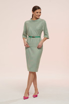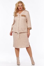 Комплект 2-х предметный состоит из жакета и и брюк. Жакет женский удлиненный,из трикотажной ткани, полуприлегающего силуэта с центральной бортовой застежкой на пуговицы до линии перегиба лацкана. Спереди рельефные швы от плечевого шва, отрезной бочок и карман с клапаном. Спинка с рельефами от плечевого шва. Рукав втачной, двухшовный. Воротник пиджачного типа. Перед жакета на подкладке, длина по спинке 67 см, длина рукава 62 см. Брюки классические,из текстильной ткани, прямые, слегка заужены к низу,заутюжены стрелки,по переду обработаны карманы с отрезным бочком,застежка на тесьму-молнию и 1 пуговицу.На задних половинках обработаны вытачки и имитация карманов с листочкой, пояс в брюках притачной. Длина брюк от талии по боковому шву 100 см.