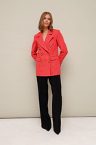 Женский комплект 2-х предметный состоит из жакета и юбки. Жакет классический,с  V-образным вырезом, полуприлегающего силуэта с центральной бортовой застежкой на петли-пуговицы. Спереди рельефные швы от плечевого шва,отрезной бочок и карман с втачной листочкой. Спинка с рельефами от плечевого шва. Рукав втачной, двухшовный, укороченный, с небольшим разрезом в локтевом шве. Перед жакета на подкладке. Длина рукава 48 см, длина жакета по спинке 59 смЮбка прямого силуэта, верхний срез юбки обработан обтачкой, заднее полотнище со средним швом, застегивается на потайную молнию. Шов переходит к низу в шлицу. Юбка по переднему и заднему полотнищу с кокеткой и вертикальными рельефами, швы отстрочены в цвет юбки. Длина по боковому шву 70 см. Юбка на подкладке..