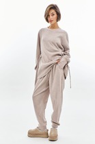 Комплект 2-х предметный состоит из жакета и и брюк. Двубортный жакет, свободного кроя, на подкладке. По переду имеется отрезной бочок и вертикальные вытачки. С прорезными карманами с клапаном и двумя обтачками. Спинка цельная. Воротник пиджачного типа. Рукав двухшовный, по низу рукава обработана шлица на петли-пуговицы. Длина рукава 63 см, длина по спинке 74 см. Классические брюки, прямые, слегка заужены к низу,заутюжены стрелки,по переду обработаны карманы с отрезным бочком,застежка на тесьму-молнию и 1 пуговицу.На задних половинках обработаны вытачки и имитация карманов в рамку с двумя обтачками,пояс в брюках притачной. По низу брюк в боковом шве есть небольшой разрез. Длина брюк от талии по боковому шву 96 см.