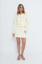 Комплект женский, 2-х предметный, из текстильной ткани, состоит из жакета и юбки. Жакет женский удлиненный, на подкладке, полуприлегающего силуэта с центральной бортовой застежкой на пуговицы до линии перегиба лацкана. Спереди рельефные швы от плечевого шва, отрезной бочок и карман с клапаном. Спинка с рельефами от плечевого шва. Рукав втачной, двухшовный, по низу рукава обработана шлица на петли-пуговицы. Воротник пиджачного типа. Длина по спинке 66 см, длина рукава 62 см.Юбка прямого силуэта, с небольшой кокеткой в верхней части, которая обработана обтачкой, спереди обработан разрез-шлица. Заднее полотнище со средним швом и талиевыми вытачками, застегивается на потайную молнию. Длина по боковому шву 74 см. Юбка на подкладке.