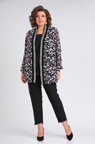 Костюм женский спортивный, состоит из джемпера и шорт. Выполнен из трикотажной ткани. Джемпер свободного силуэта без выточек со спущенным плечом, рукав с притачным манжетом, в боковых швах разрезы. Шорты свободного силуэта, низ обработан отложным манжетом, пояс на резинке, в боковых швах карманы.