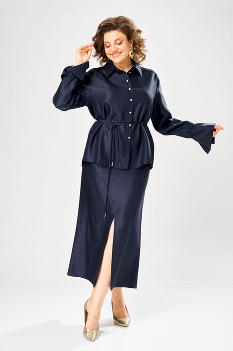 Костюм состоит из блузы-рубашки и юбки.