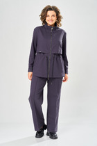 Горловина с цельновыкроенной стойкой, рукав реглан. Низ рукава и низ изделия с вытрепанным краем.