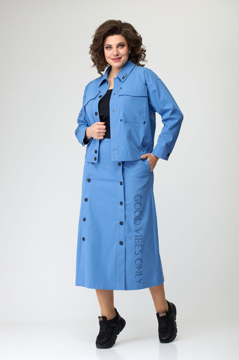 Стильный женский костюм, выполнен из джинсовой ткани.