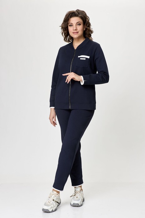 Бомбер полуприлегающего силуэта с центральной застежкой на молнию, горловина со стойкой. На левой стороне переда накладной карман с отделкой и нашивкой (НАШИВКА МОЖЕТ МЕНЯТЬСЯ).