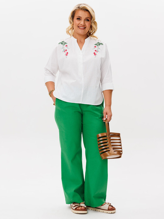 Комплект из мягкой хлопковой  блузки и льняных брюк- это стильный и удобный образ.