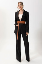 Стильный молодежный костюм с ярким принтом на футболке и лампасами на брюках.