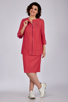 Костюм женский с юбкой из трикотажа. Кофта с цельнокроенными рукавами и отрезными бочками. Перед со средним швом и защипом на 0,2 см вдоль него. Спинка со средним швом. Горловина V-образной формы. В качестве отделки нашивка в правом нижнем углу переда. Юбка длинная, расклешеная к низу. Заднее полотнище со средним швом. Пояс выполнен из декоративной эластичной тесьмы. Внешний вид фурнитуры может отличаться от заявленной на фото.