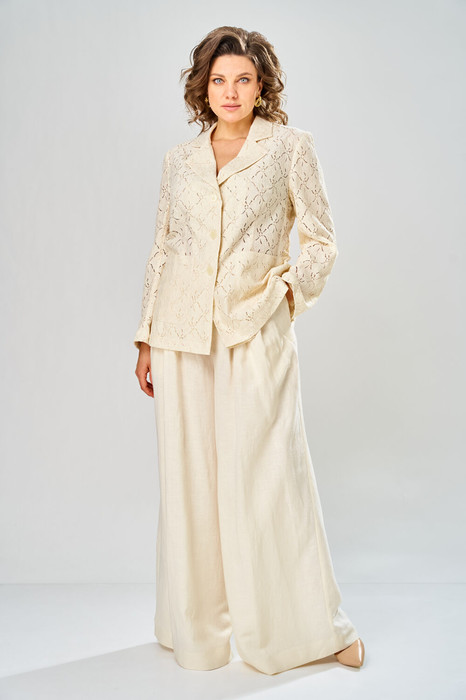 Состав: Жакет- Вискоза-50%; Хлопок-50%; Брюки- Вискоза-47%; Лён-53%;