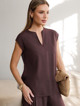 Свободный топ с V-вырезом и цельнокроеным коротким рукавом изо льна с вискозой
