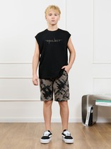 Костюм для девочки из трикотажного полотна "кулирка" в комбинации двух видов: гладкокрашеного и набивного с тематическим рисунком, состоящий из футболки и шорт. Футболка из гладкокрашеного полотна, с цельнокроенными короткими рукавами, горловиной овальной формы, обработанной втачной планкой и отделочной строчкой. В центре переда - принт, выполненгный в технике шелкографии. Шорты из полотна с набивным рисунком, свободного силуэта, на цельнокроенном поясе с эластичной тесьмой внутри.