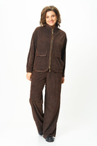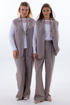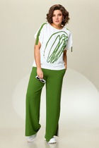 Идеальное решение на летний период, 2-х предметный комплект, состоящий из блузы и брюк.  Легкая, струящаяся ткань, не стесняет движение и сохраняет привлекательный, женственный образ. Женственная блуза, которая создает эффектный и стильный образ. Изделие полуприлегающего силуэта, талия фиксируется поясом из основной ткани. Воротник рубашечный. V-образный вырез горловины. Рукав втачной, низ обработан притачной манжетой. В боковых швах имеются разрезы, Брюки прямые, с функциональными боковыми карманами, пояс притачной на резинке в круговую