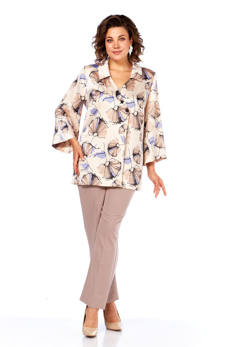Костюм Элль стиль 2394 бежевый принт, брюки бежево-серые