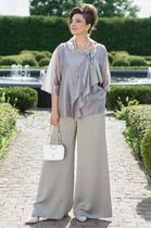 Стильный образ подчеркнет привлекательность. Комплект, который с легкостью обратит на себя внимание. Изделие позволит чувствовать себя ярко и уверенно. Воздушная невесомая блуза, для тех, кто ценит легкость и воздушность, выполнена из шифона, с отлетной деталью, что создает приятное ощущение свободы в движении. На полочке нагрудные вытачки, вырез горловины аккуратной округлой формы. Рукав втачной, свободный. Блуза на подкладке. Брюки классические с заутюженными стрелками, слегка зауженные к низу, оформлены притачным поясом, частично на резинке. Застежка спереди брюк на молнию и петлю-пуговицу.