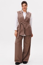 Комплект: Блузка + брюки. Комплект выполнен из плательно-блузочной ткани. Блузка прямого силуэта, покроя oversize, длиной ниже линии бедер. Спереди центральная застежка на пуговицы. Спинка цельная. Воротник стояче-отложной. Плечевой шов удлинен. Рукав рубашечного покроя, одношовный, длиной ниже линии локтя. В боковых швах разрезы. Спинка длиннее переда. Брюки прямого покроя, на притачном поясе с эластичной тесьмой. Спереди боковые карманы с наклонным входом. Топ в комплект не входит, можно приобрести отдельно арт. 2855.