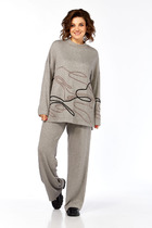 Костюм женский состоящий из туники и брюк, туника прямого силуэта с ассиметричным вырезом до бедра, и накладным карманом по линии груди. Рукава втачные с широкой манжетой по низу.. Брюки зауженные к низу, на притачном поясе с резинкой и завязкой. В боковых швах  расположены функциональные карманы.