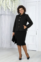 Костюм женский выполнен из сочетания костюмной ткани и джинса, состоит из жакета и брюк, жакет полуприлегающего кроя с имитацией на полочке - "джинсы" и функциональными карманами, воротник V-образный, отложной . Рукав длинный втачной.Жакет с полной подкладкой. Брюки завышенной посадки на притачном поясе с резинкой в боковых швах брюк расположены карманы, застежка молния на гульфике.