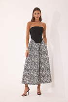 "Костюм брючный 2-х предметный. Воплотить уникальный образ на основе базовых вещей оказывается не так уж и сложно. Идеальное сочетание и пропорции-трикотажный джемпер в полоску и белые брюки с акцентной металлической фурнитурой.