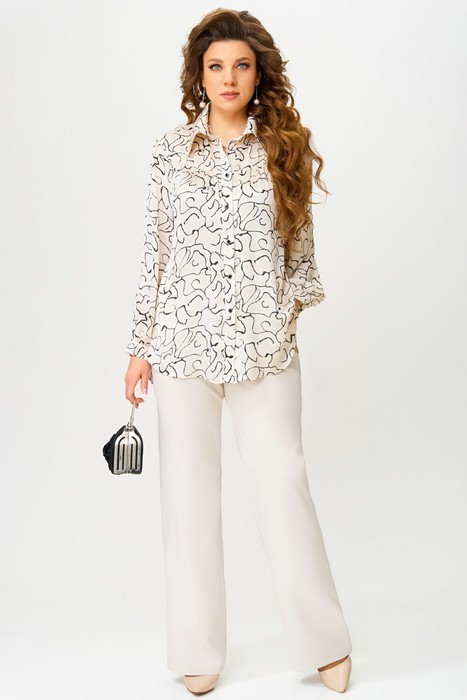 Нарядный стильный брючный комплект ""Хариса"" состоит из блузки и брюк, выполнен из текстильной ткани.