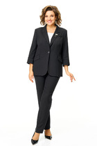 Брюки дополняют ансамбль своей продуманной конструкцией: плотный трикотаж обеспечивает тепло и форму, лампас вдоль бокового шва — визуальную вертикаль, вытягивающую силуэт. Эластичный пояс и аккуратный подгиб низа с открытым срезом придают изделию современный характер, а карман в боковом шве добавляет функциональности.