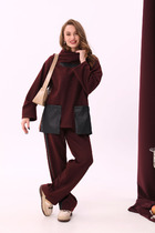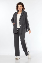 Костюм женский жакет+ юбка приталенного силуэта, выполнен из текстильного полотна костюмно- плательной группы. Перед с нагрудной вытачкой идущей от бокового шва, накладными карманами с клапаном. На планке расположены 5 пуговиц. Спинка со средним швом. По низу жакета обработан пояс. Воротник стояче отложной. Рукава одношовные заканчивающиеся манжетой. Юбка прямая, на поясе спереди застёгивается на пуговицы. По переду расположены накладные клапаны. На клапанах расположены декоративные пуговицы в цвет основных.