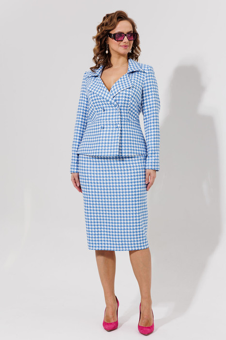 Костюм женский жакет+юбка. Костюм выполнен из текстильной ткани костюмно- плательной группы Жакет однобортный на подкладке полуприлегающего силуэта с отрезной баской по линии талии. Перед с отрезным бочком нагрудными вытачками, идущими от отрезной линии талии.