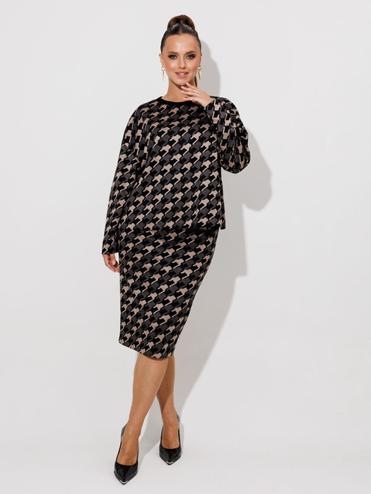 Совместные покупки Сургут Женская одежда Костюмы, комплекты — Костюм Galean Style 990 чёрный с бежевым гусьлапка