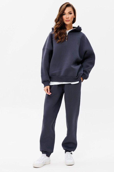 " Этот спортивный костюм от GOwear отлично подойдет для дома, прогулок, путешествий и отдыха. Сделан из теплой, комфортной ткани. Состоит из джемпера и брюк. Джемпер имеет двойной капюшон и короткую застежку - молнию черного контрастного цвета по центру переда. На переде с левой стороны выполнена вышивка в цвет ткани. Джемпер имеет прямой силуэт. Низ джемпера и манжеты выполнены из кашкорсе. Брюки зауженные к низу с притачным поясом (резинка и шнурок внутри). Брюки с боковыми карманами. По низу брюк – манжеты.