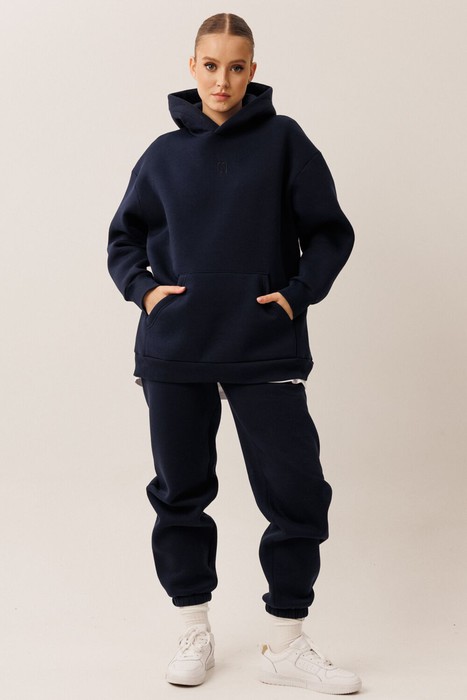 Женский тёплый уютный костюм. Подойдет для прогулок и отдыха. Изготовлен из футера с начесом, состоит из худи, покроя оверсайз и джоггеров.