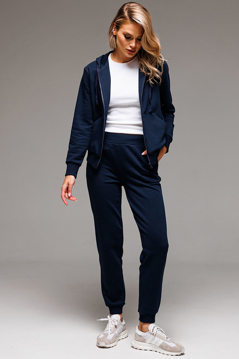 Классический женский спортивный костюм состоит из худи на застёжке-молнии и брюк на манжетах. Всесезонная ткань сделает его любимым в Вашем гардеробе как для дома, так и улицы.