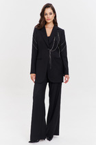 Женский яркий, повседневный костюм, состоящий из оверсайз свитшота с контрастной вышивкой и брюк со стрелками. Это находка для тех, кто ценит свободу, стиль и не хочет отказывать себе в комфорте 24/7.