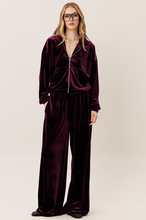 Один из хитов сезона в коллекции от GO - шикарный велюровый костюм! Худи на молнии вместе с широкими брюками - лучшее решение для Вас!