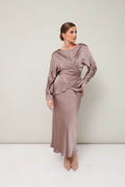Современный комфортный костюм, состоит из зауженной юбки и укороченного свитшота. Отлично подойдёт для офиса, прогулок и путешествий. Пошит из теплой, комфортной ткани. Свитшот покроя оверсайз со спущенной линией плеча. Горловина, манжеты рукавов выполнены из ткани-компаньона кошкорсе. По центру переда вышивка-логотип в цвет ткани. Свитшот с кулисой по низу с резинкой внутри и фиксатором по центру переда. Юбка зауженная к низу, облегающая фигуру, длиной миди. Перед с удобными боковыми карманами, по центру переда разрез с отделочной строчкой. Пояс из ткани кошкорсе с резинкой внутри.
