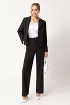 Брюки палаццо с лампасами по бокам. По талии на резинке, без застежки. В боковых швах карманы.