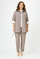 Костюм женский, состоящий из жакета и юбки. Жакет полуприлегающего силуэта из мягкого трикотажного полотна средней плотности, частично на трикотажной подкладке, с плечевыми накладками, рукава втачные, по переду функциональные карманы, застежка на петли и пуговицы. Декор по планке, горловине, листочке кармана из ткани контрастного цвета.