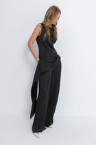 Костюм женский, состоящий из туники и брюк, выполнен из легкой струщейся ткани. Туника свободного силуэта со втачными рукавами; линия горловины с V-образным вырезом и контрастным довязом. Брюки классические, прямого кроя, в боковых швах функциональные карманы, пояс притачной полностью на резинке. Костюм полностью соответсвтует заявленному размеру. Пользуйтесь таблицей замеров готового изделия.