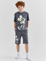 Костюм детский футболка и брюки. Футболка из кулирного полотна, набивка с рисунком "Буквы". Покрой-реглан, прямого силуэта с коротким рукавом и круглой горловиной, обработанной узким воротником. Брюки из кулирного полотна с лайкрой цвета индиго. Прямого, свободного покроя, с имитацией застежки-гульфик. Карманы "хулиган". На задних частях отрезная кокетка. Низ подгибка. Пояс с втачной резинкой.