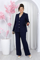 Костюм женский, состоящий из жакета и юбки. Жакет прямого силуэта без подкладки, длиной до линии бедра. По переду жакета настрочены накладные карманы с встречными складками. В шве притачивания кокетки расположен клапан кармана, застегивающийся на петлю и пуговицу. В среднем шве спинки расположена встречная складка. Рукав втачной одношовный, прямой. По низу рукава расположена пата, застегивающаяся на петлю и пуговицу. По низу жакета обработан отрезной пояс. Горловина обработана втачным воротником с лацканами. Застежка центральная , однобортная на петли пуговицы. Юбка женская на подкладке  А – силуэта длиной до середины икры. По переду юбки заложены встречные складки и нстрочены клапаны  с декоративными пуговицами. Спинка юбки цельная. Карманы обработаны в боковом шве юбки. По левому боковому шву юбки находится застежка – молния.  Верхний срез юбки обработан притачным поясом с резинкой по спинке.