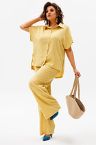 Этот эксклюзивный костюм, состоящий из классического жилета с пятью пуговицами и прорезными карманами и удлиненной юбки-трапеции из костюмной ткани с боковыми карманами и изящными встречными складками, — идеальное сочетание элегантности и практичности. Жилет, украшенный пуговицами, добавляет нотку аристократической изысканности, а карманы делают его не только стильным, но и удобным. Юбка-трапеция    создает утонченный и женственный образ, в то время как карманы и складки добавляют элемент загадочности и шарма. Этот костюм — воплощение времени и моды, которое будет привлекать восхищенные взгляды и вызывать восхищение своим утонченным стилем и вниманием к деталям.