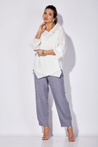 Брюки прямого свободного кроя идеально сочетаются с джемпером, завершая гармоничный образ. Модель с аккуратными карманами, встроенными в боковые швы, подчеркивает минимализм и удобство. Свободный крой не сковывает движения, а жатая вискозная ткань сохраняет форму даже при активной носке. Такой комплект легко впишется в повседневный гардероб: сочетайте его с кроссовками для прогулок или с кедами для урбанистического лука.