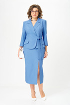 Элегантный юбочный костюм, стильный и универсальный наряд для торжественных и праздничных мероприятий.  Обеспечит вашему образу максимум внимания и комплементов , благодаря безупречному подбору цвета и художественному оформлению цветочной аппликации ! Жакет с подкладкой по полочке , полуприлегающего силуэта с v образным вырезом , рукав втачной двух шовный . Юбка без подкладки,  на поясе  с боковыми резинками, расклешенного силуэта со складками по переду и боковыми карманами.