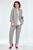 Брюки комплекта созданы в свободном стиле палаццо. В пояс брюк по спинке вставлена эластичная тесьма, шириной 3 см. Спереди пояс фиксируется горизонтально на петли/пуговицы и вертикалную закрытую клапан-молнию (гульфик).