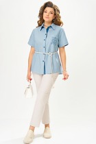 Брюки комплекта созданы в свободном стиле. В пояс брюк по спинке вставлена эластичная тесьма, шириной 3 см. Спереди пояс фиксируется горизонтально на петли/пуговицы и вертикалную закрытую клапан-молнию (гульфик).