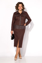 Хит сезона 2025-26 замшевый костюм с юбкой от бренда LILIANA. Невероятно мягкий, уютный комплект из замшевого материала в составе жакета на пуговицах и юбки карандаш с разрезом по переду. Жакет полуприталенного силуэта с отложным воротником. Застежка центральная на декоративной планке, на петли и пуговицы. По переду и спинке предусмотрены декоративные кокетки с рельефными швами. Полочка с декоративными клапанами. Рука вточной, полной длины. В комплекте юбка-карандаш, длиной за колено. Пояс притачной, с резинкой по спинке. Застежка - тесьма молния с обработанным гульфиком. По переду расположены карманы. Изделие на шелковой подкладке.